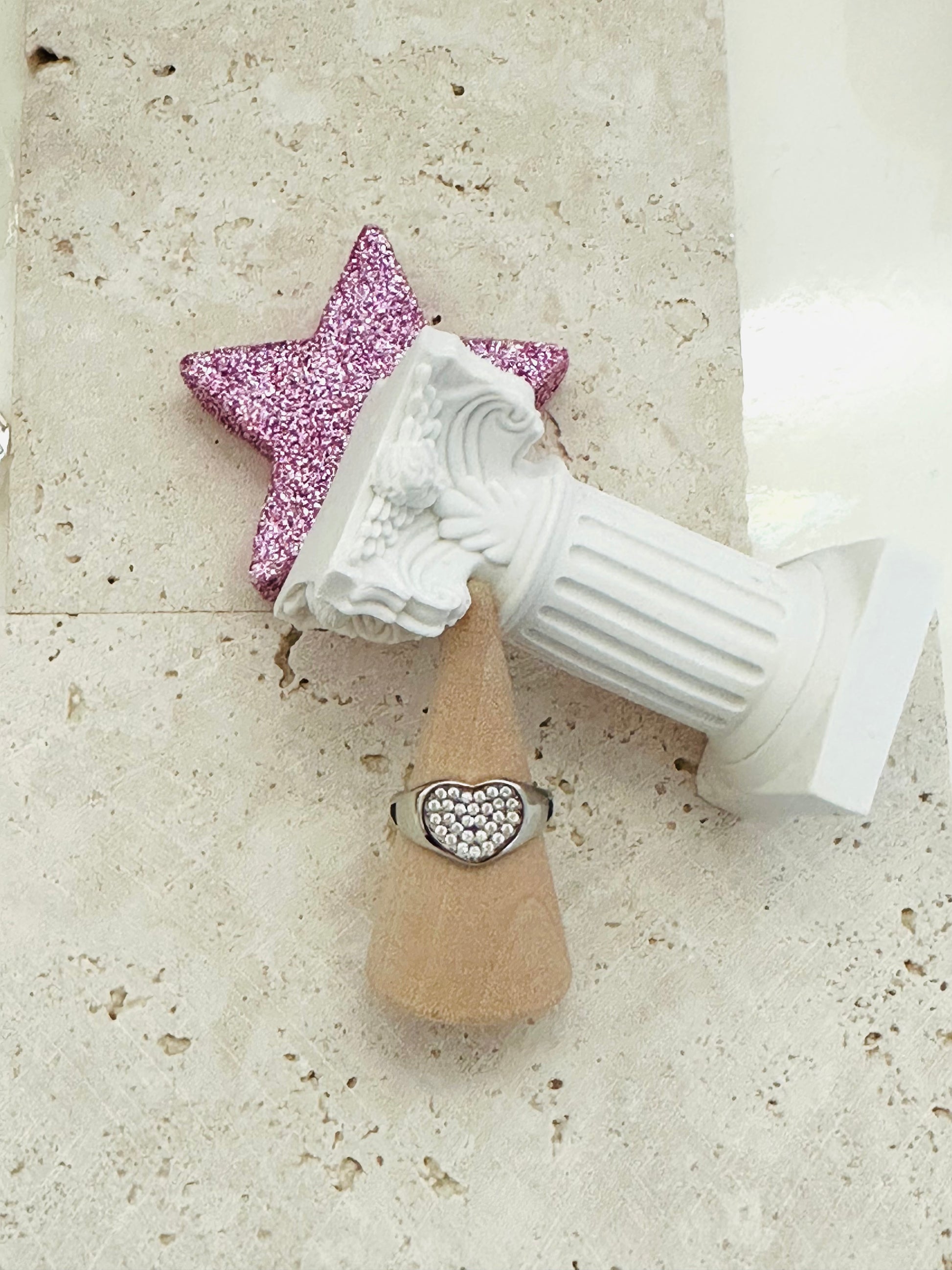 L’anello Cristallo d’Amore è impreziosito da un cuore centrale interamente ricoperto da zirconi incastonati a pavé, che regalano una brillantezza raffinata e continua.