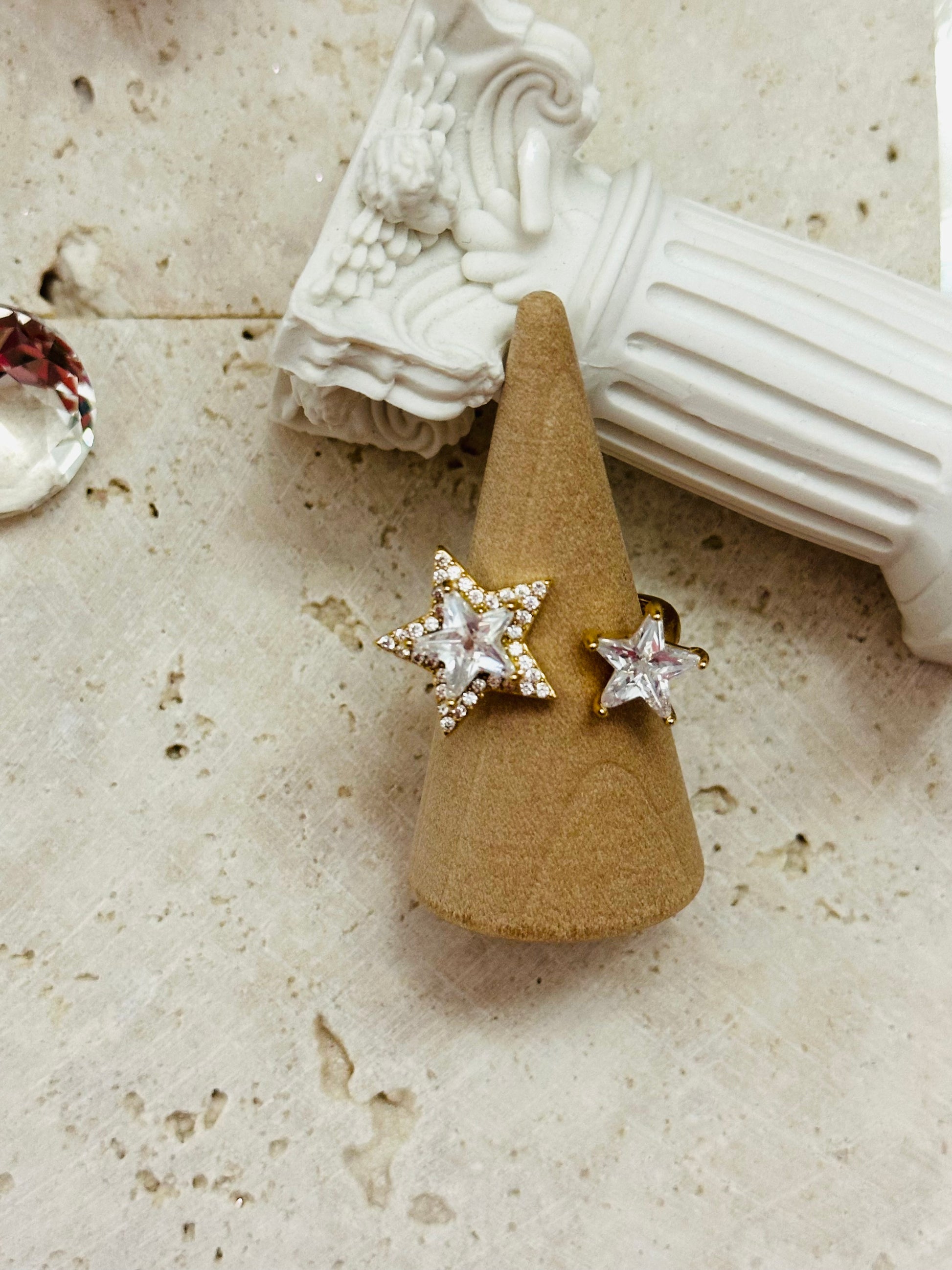 L anello Stella Polare, in acciaio inossidabile, resistente e anallergico, presenta un design aperto e regolabile, perfetto per adattarsi comodamente a qualsiasi dito.