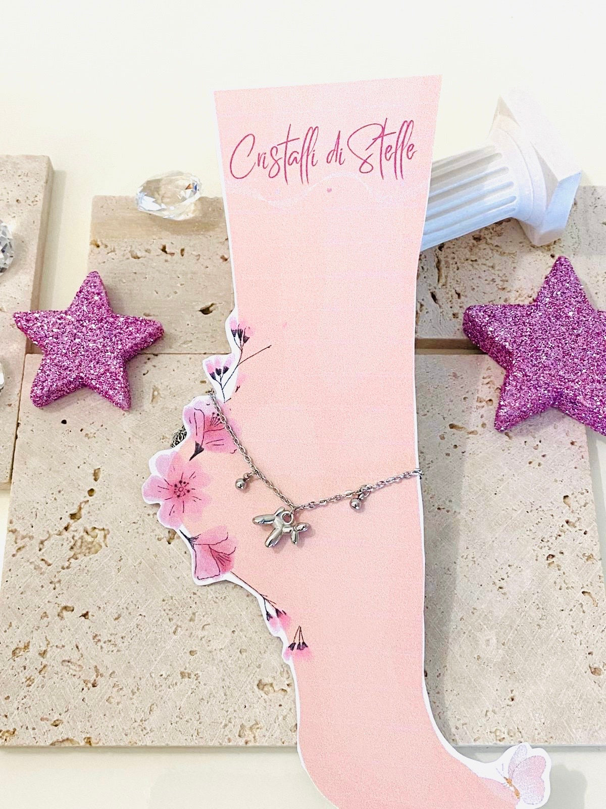 Realizzata in acciaio inossidabile 316L, è impreziosita da un charm a forma di cagnolino palloncino, simbolo di leggerezza e spensieratezza. Indossala con sneakers, sandali o a piedi nudi: porterà un sorriso ovunque tu vada.