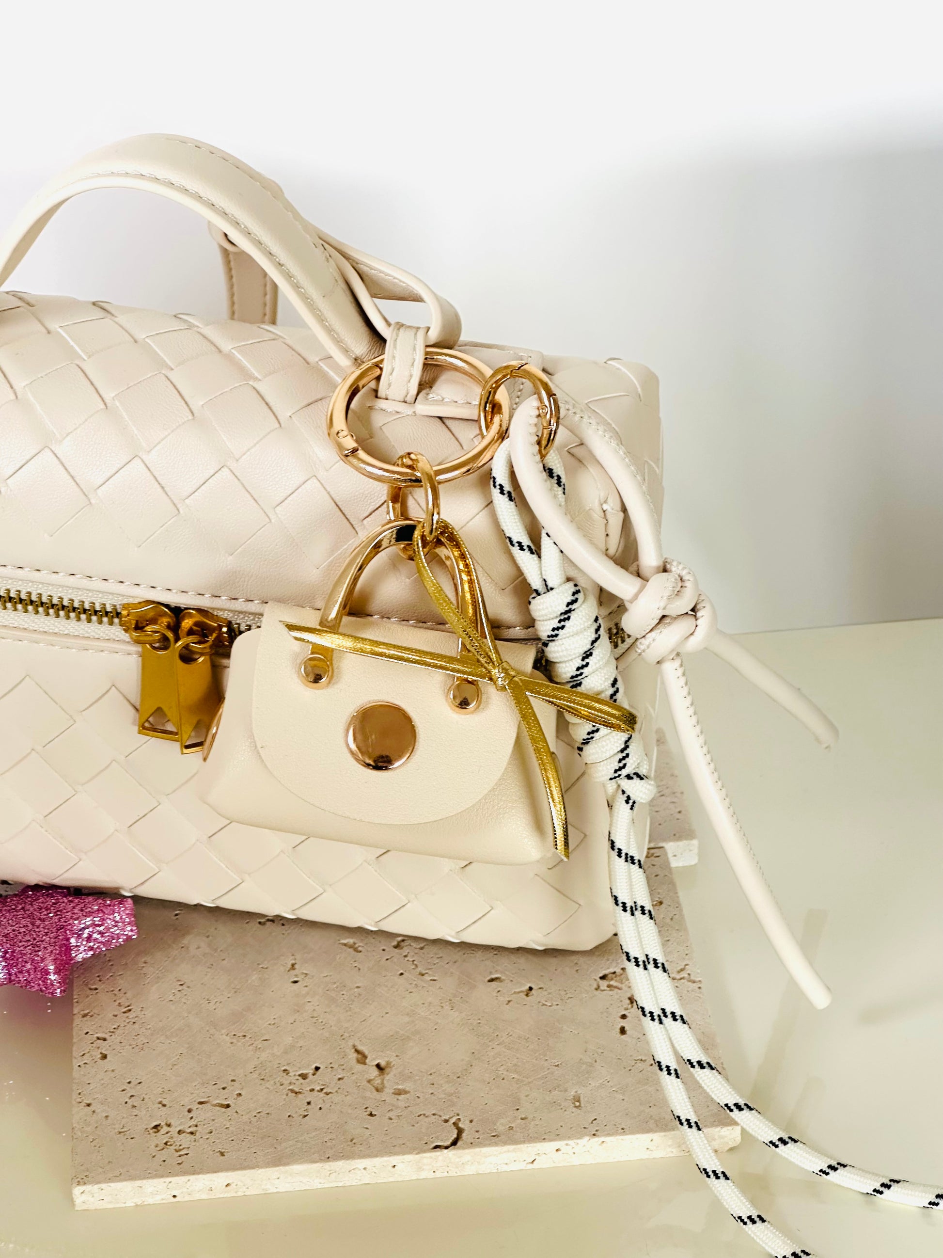 Ispirato alla silhouette delle borse iconiche , questo charm a forma di mini bag aggiunge un tocco chic e giocoso a qualsiasi borsa, zaino, portachiavi.