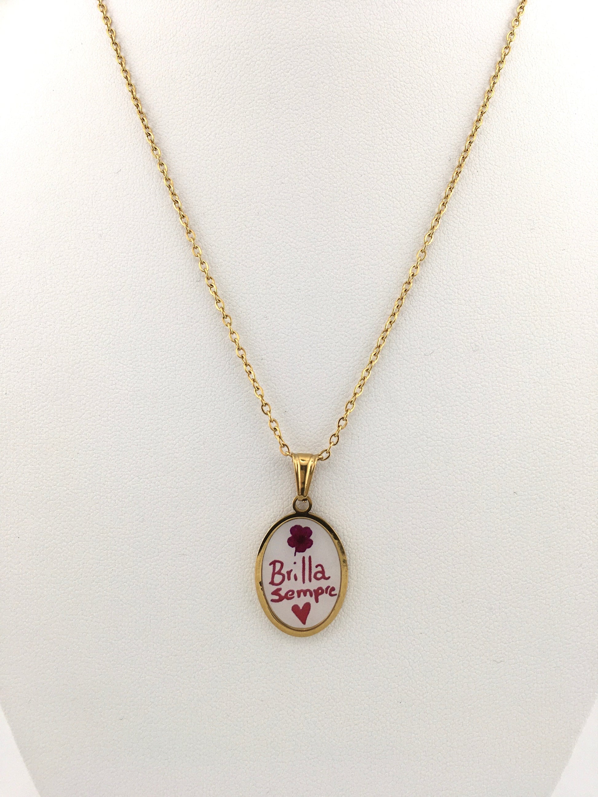 La collana in acciaio inox con pendente inciso “BRILLA SEMPRE” è pensata per ricordarti ogni giorno il tuo valore, la tua forza e la tua luce interiore.