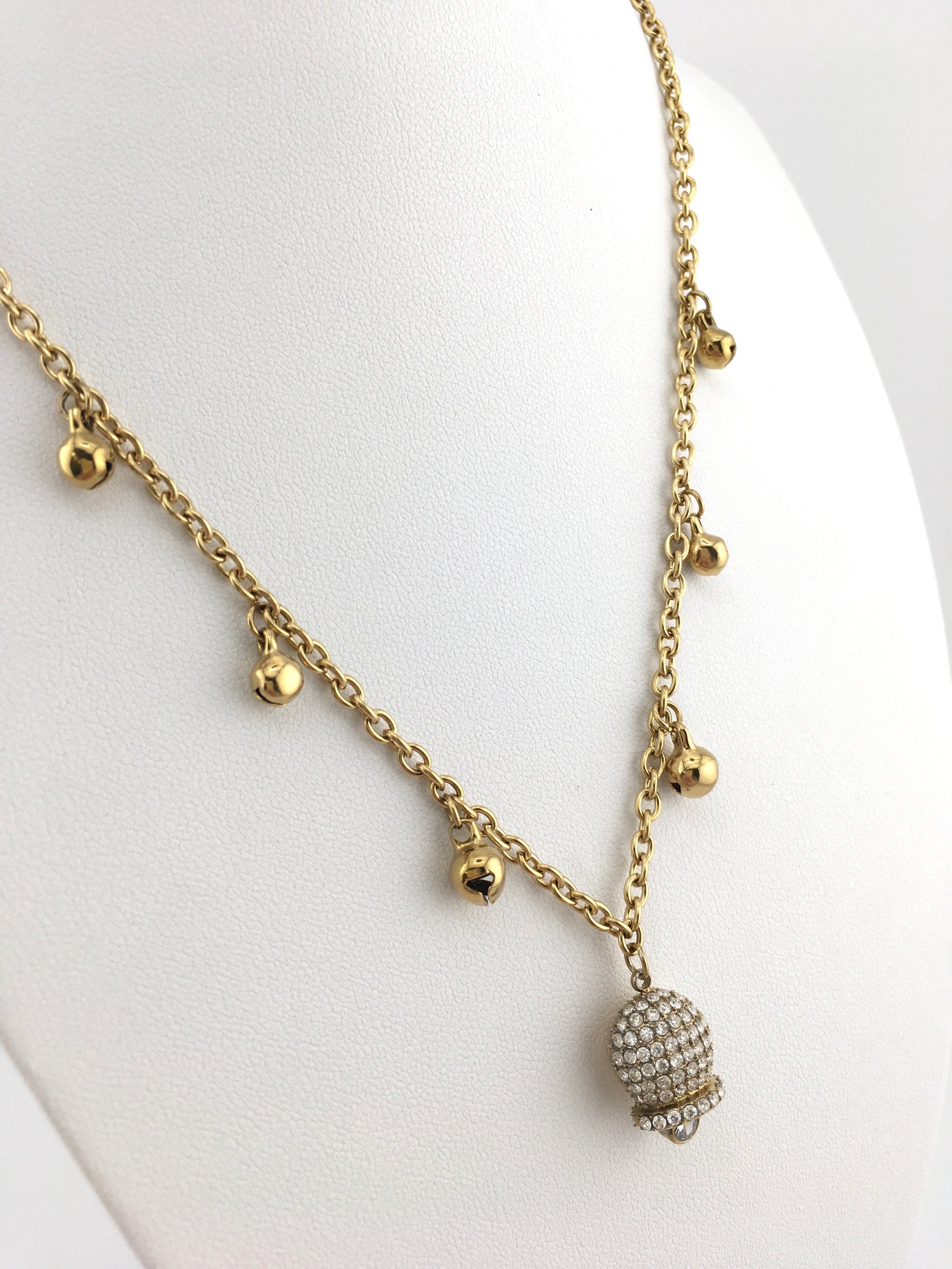 Collana Campanella realizzata catena in acciaio inossidabile e Campanella in ottone e zirconi, pertanto ne sconsigliamo il contatto con acqua e sapone.
