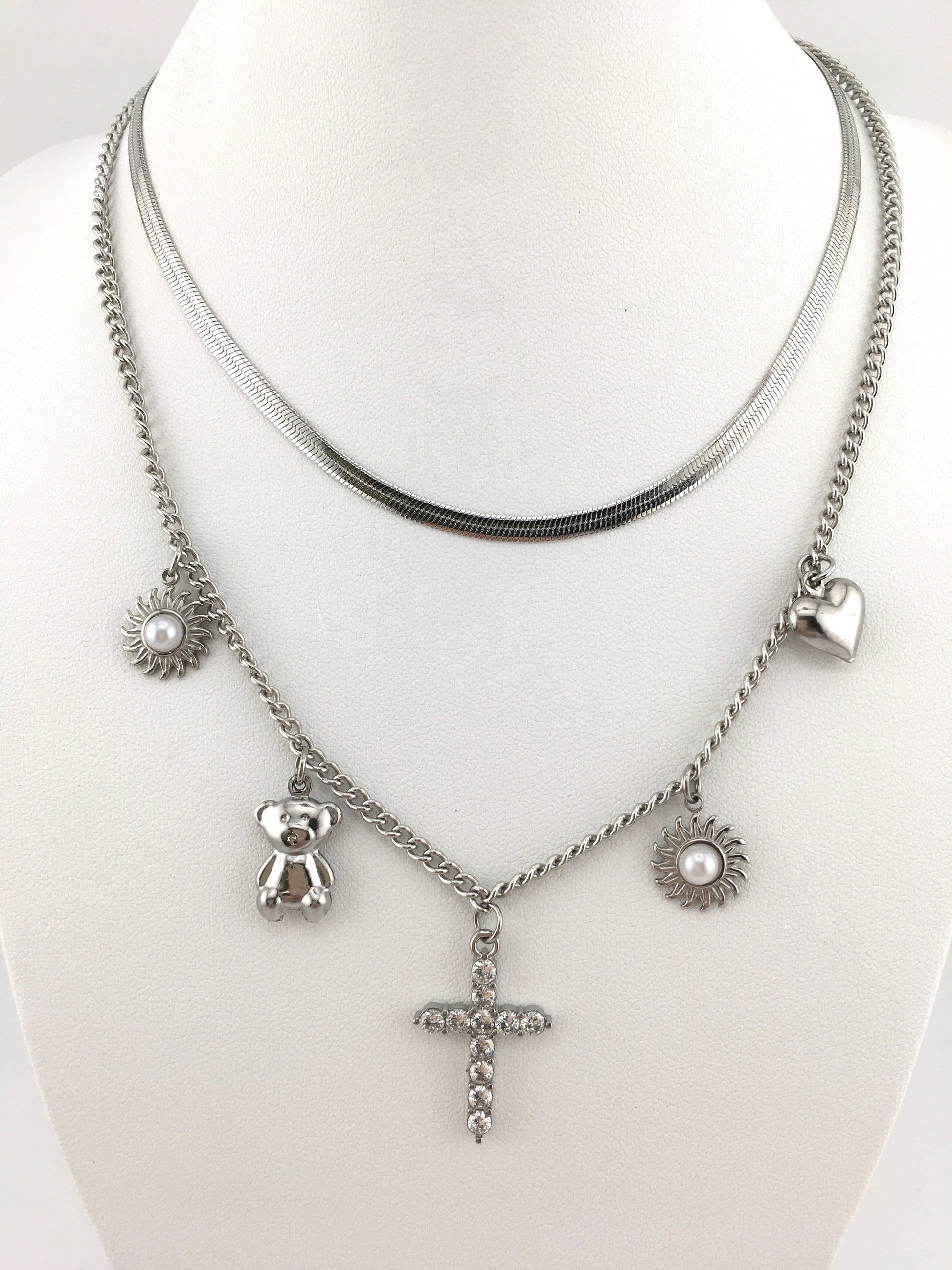 Un connubio perfetto tra essenzialità e dettagli ricercati: questo set è composto da due collane in acciaio inossidabile, unite da un’unica chiusura per un look pratico e perfettamente bilanciato.