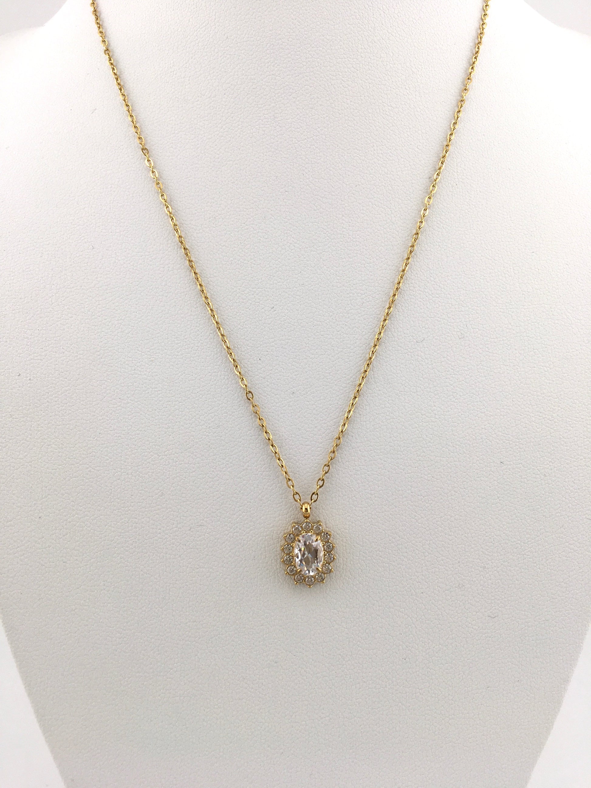La collana Ladystar è impreziosita da uno zircone ovale centrale, tagliato con precisione per catturare e riflettere ogni raggio di luce. Il design classico ma contemporaneo valorizza la pietra centrale, rendendola protagonista assoluta.