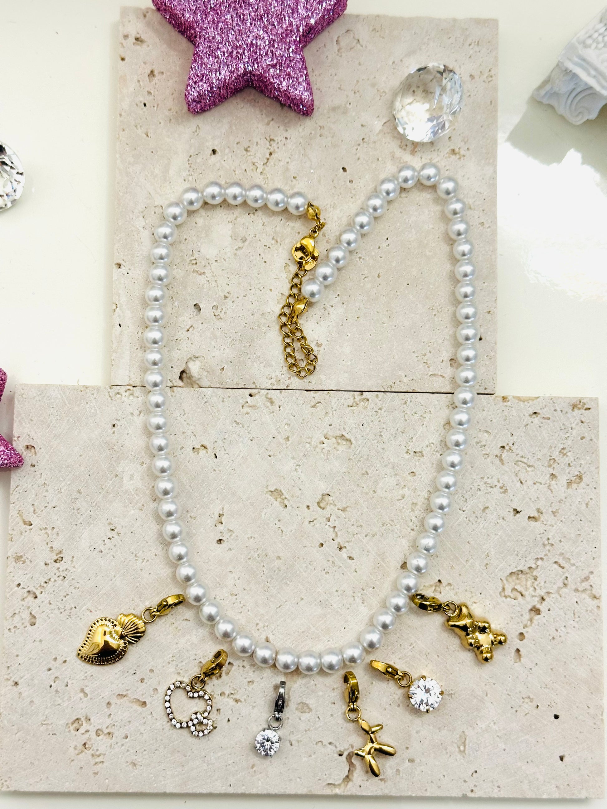 Scegli il charm che ti rappresenta – doppi cuori, punto luce Silver piccolo , punto luce grande Gold, cuore sacro, cagnolino ballon, orsetto – e crea il tuo stile unico.