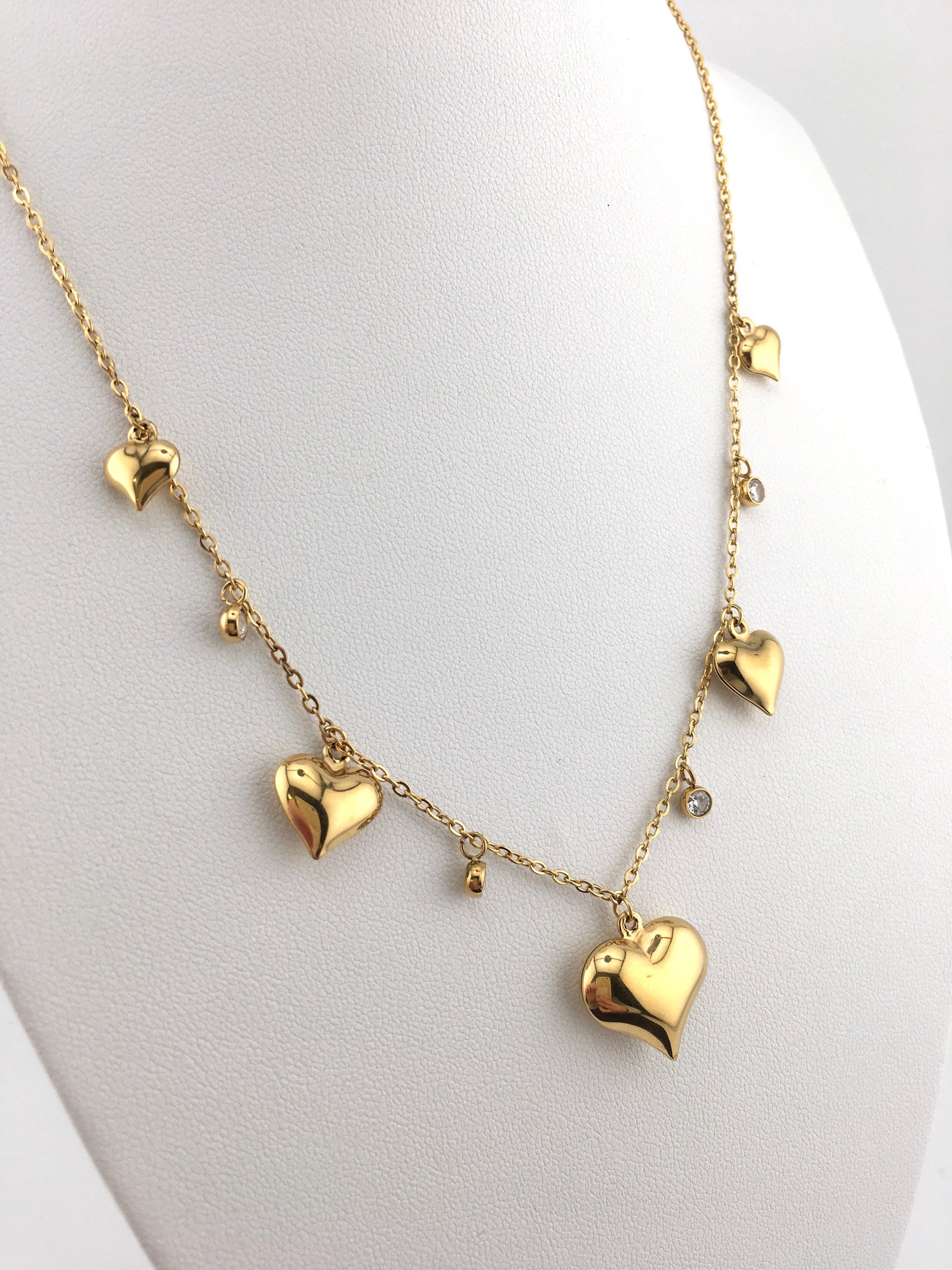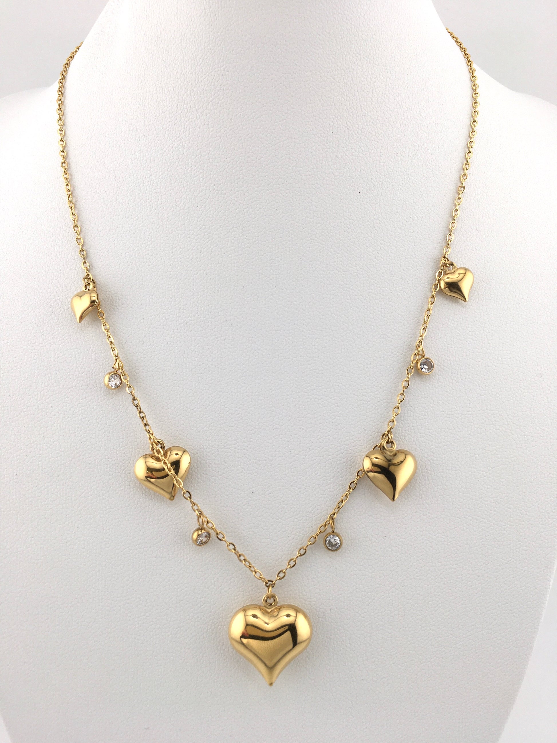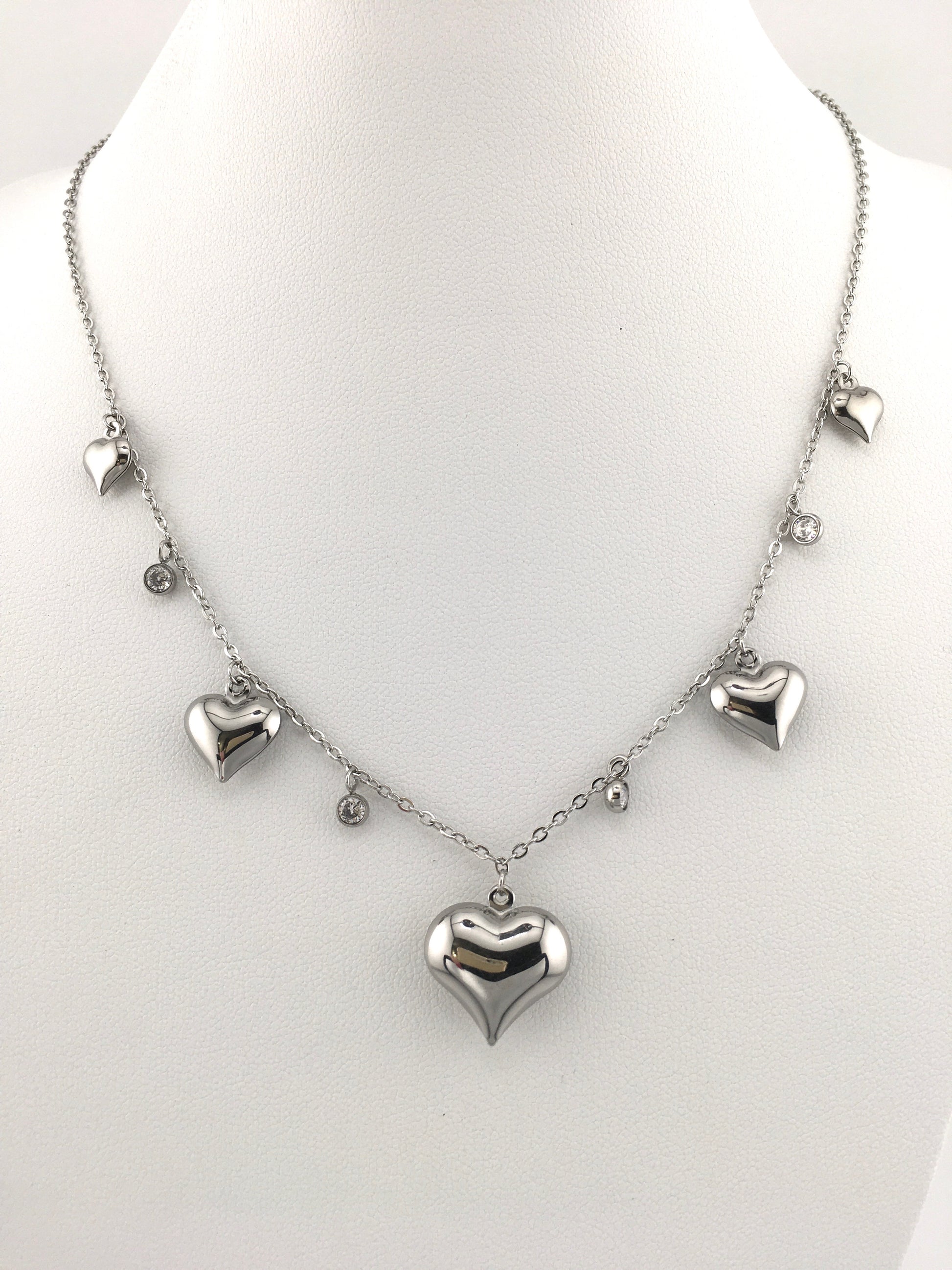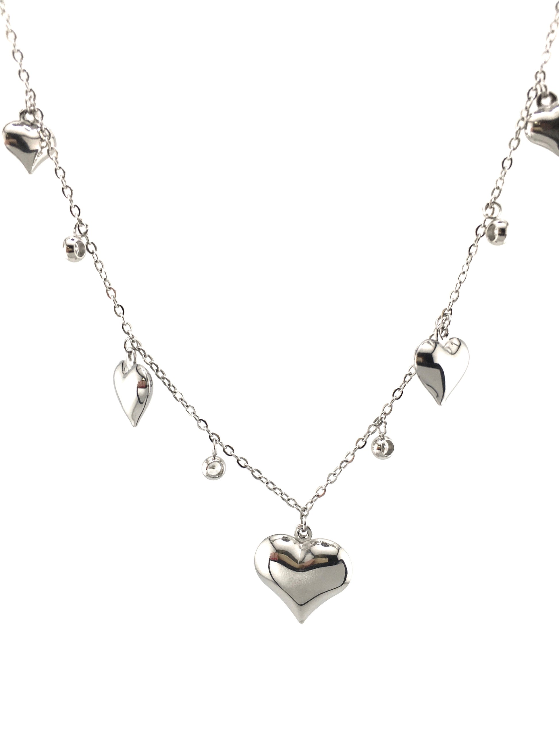 Un delicato intreccio di sognagli acuori danzano e piccoli zirconi danzano attorno a un cuore centrale in acciaio inox, simbolo di amore, armonia e connessione profonda.