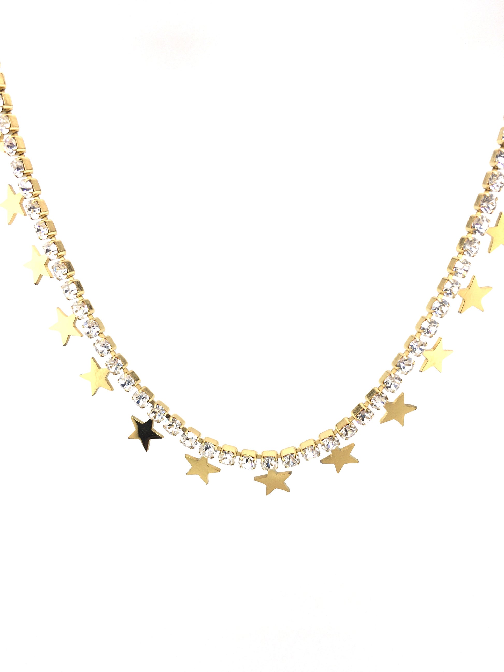 La classica collana tennis si reinventa con delicate stelline, per un effetto brillante e originale.