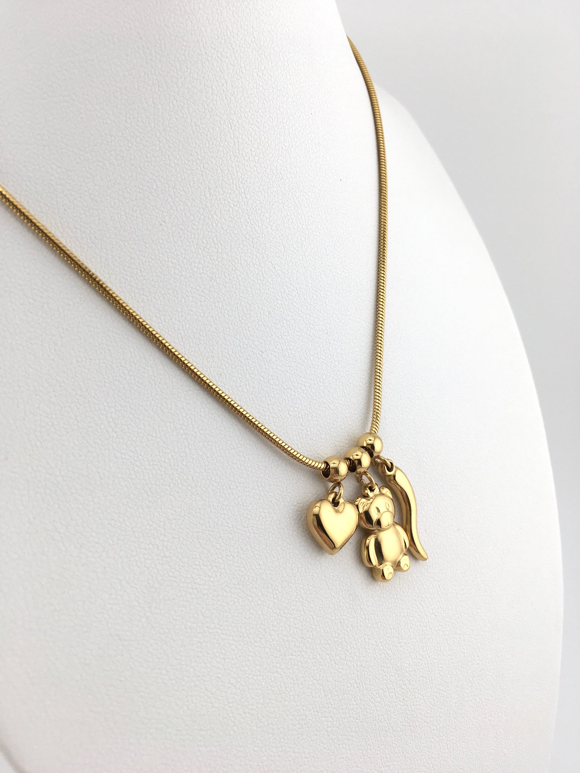 Questa collana in acciaio inossidabile unisce tre simboli speciali: