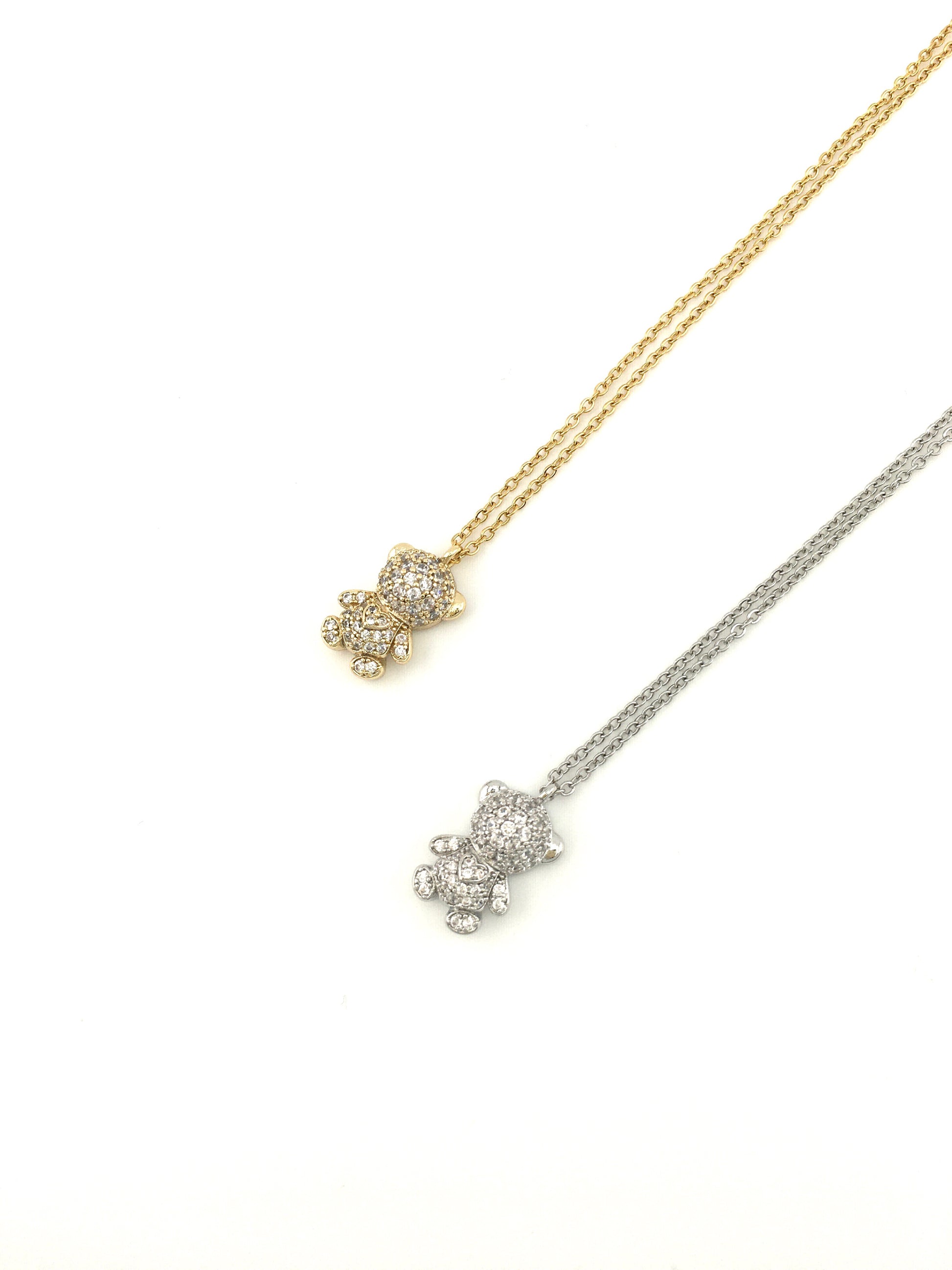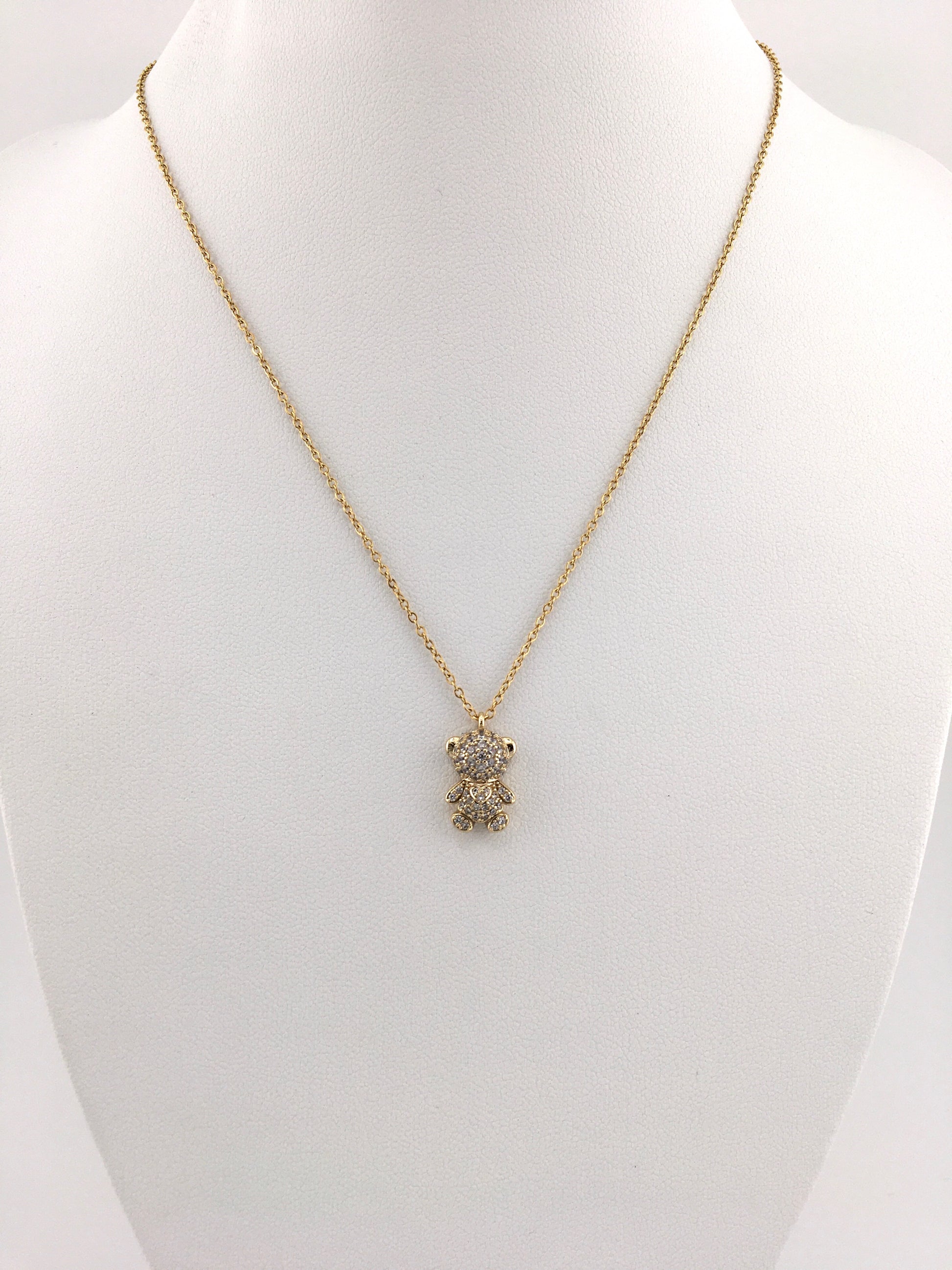 Collana in acciaio inox con pendente Teddy piccolissimo, impreziosito da zirconi luminosi che catturano la luce con delicatezza.