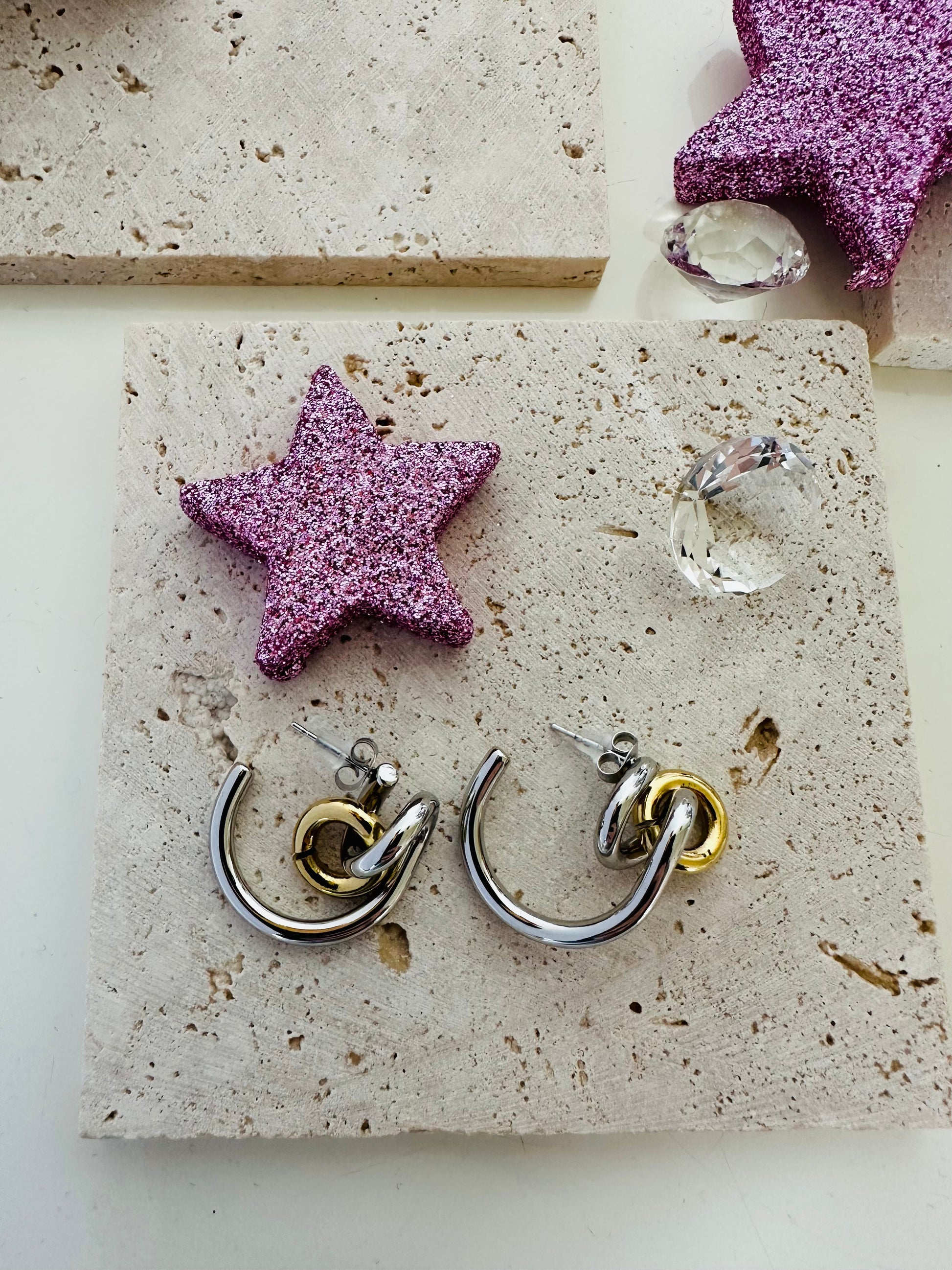 Orecchini realizzati in acciaio inox Bicolore