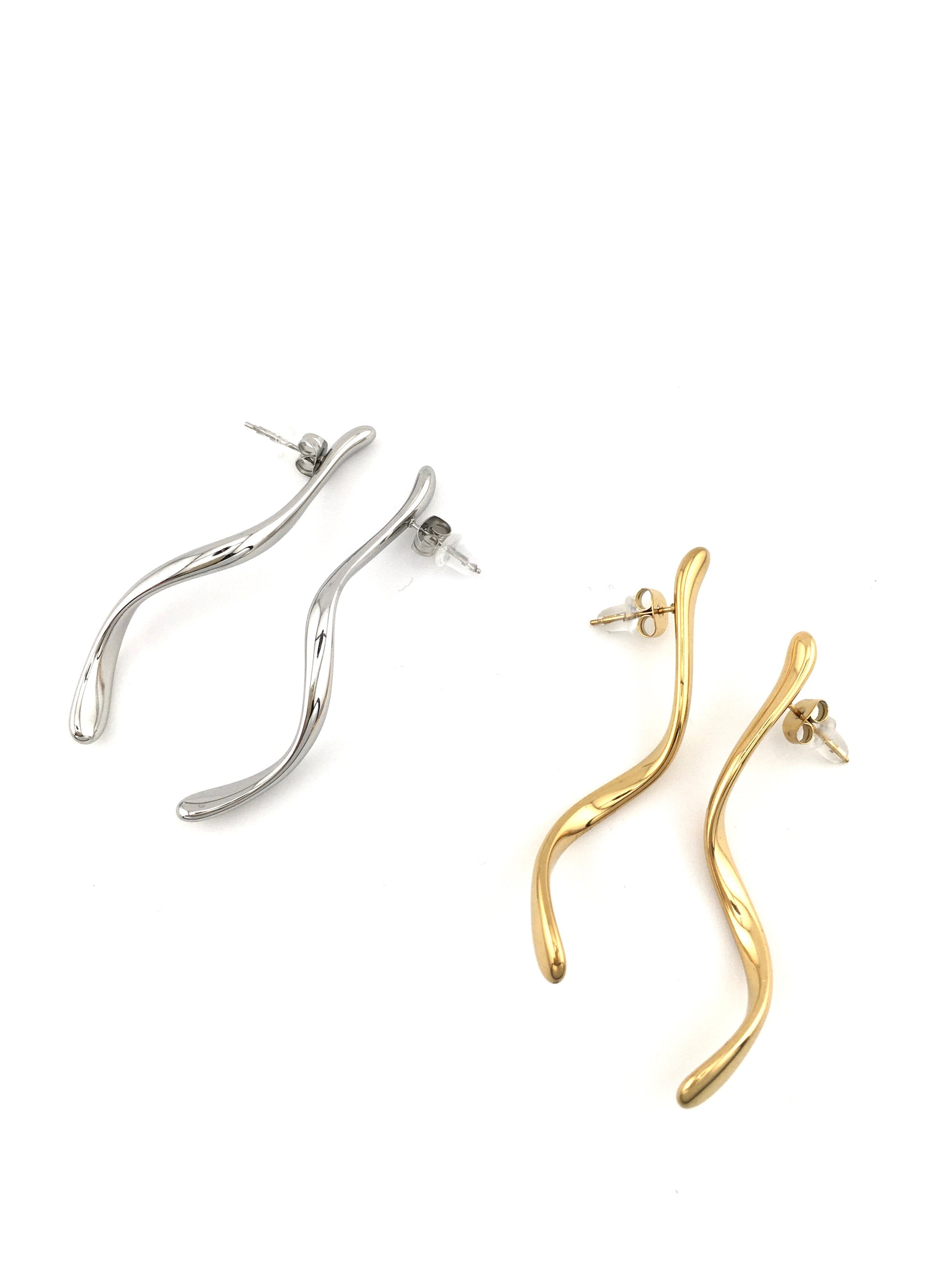 Orecchini in acciaio inossidabile dal design moderno e sofisticato, caratterizzati da una forma a S allungata che slancia il viso e dona un’eleganza naturale. Linee fluide ed essenziali rendono questo gioiello perfetto per chi ama uno stile minimal ma deciso.