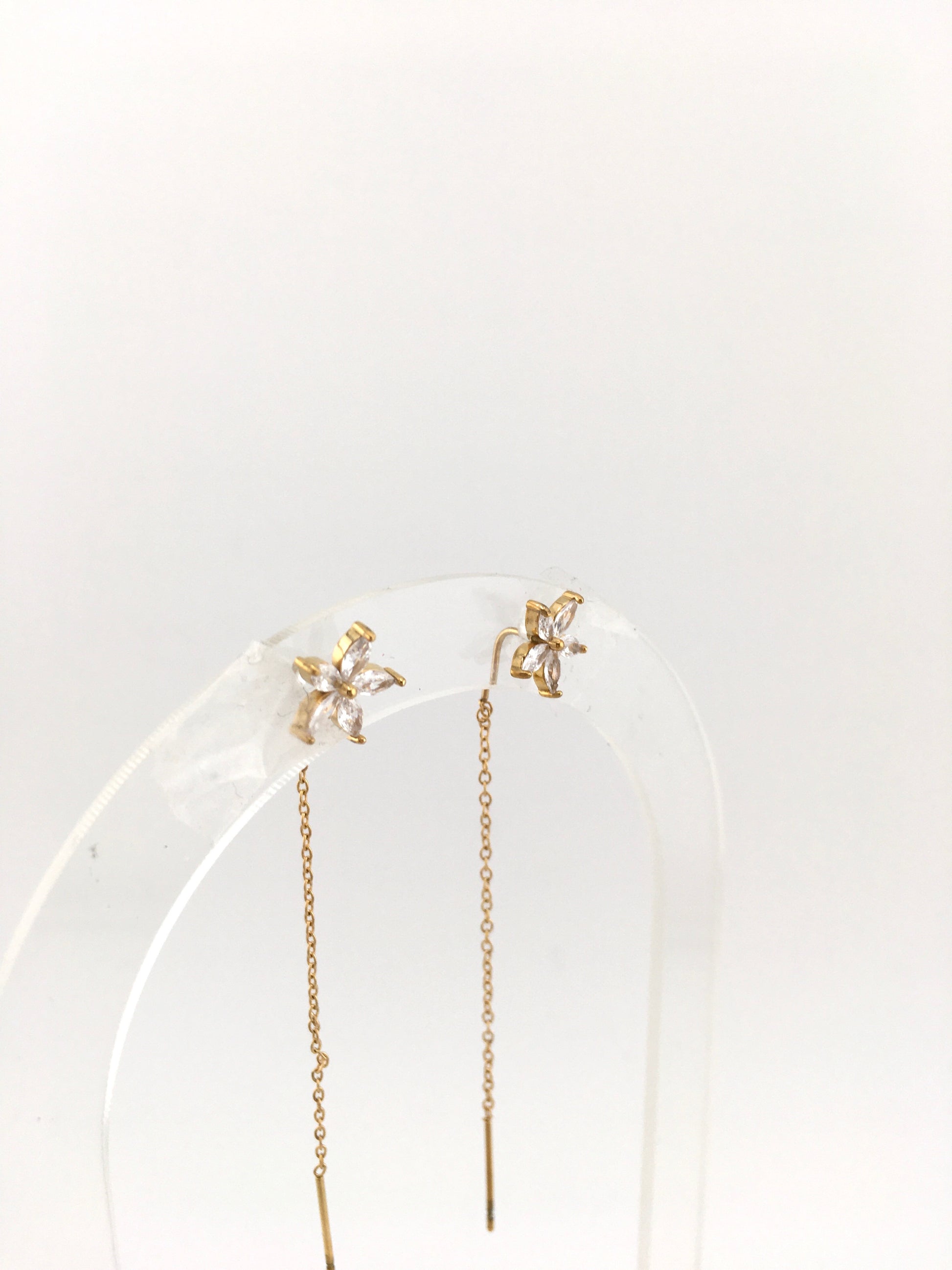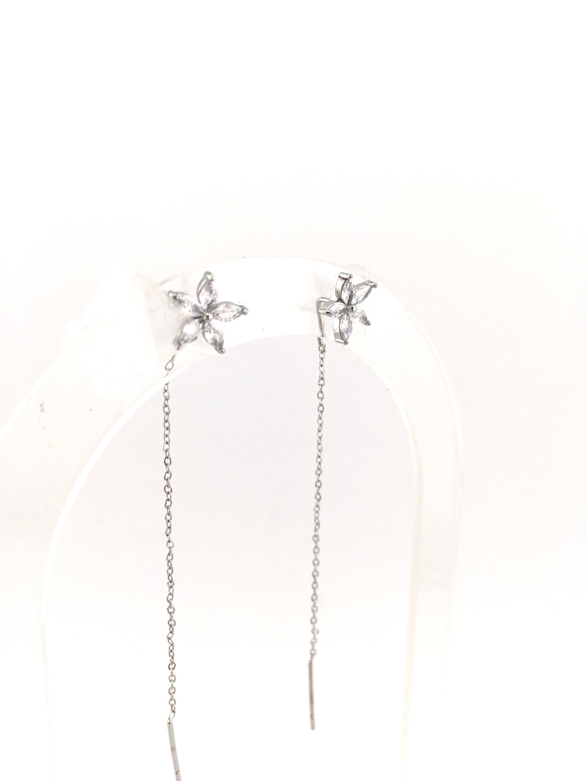 Gli orecchini a punto luce a forma di stella con catenella pendente combinano eleganza e versatilità in un unico gioiello. La stella luminosa funge da punto luce delicato, mentre la catenella pendente aggiunge movimento e modernità.