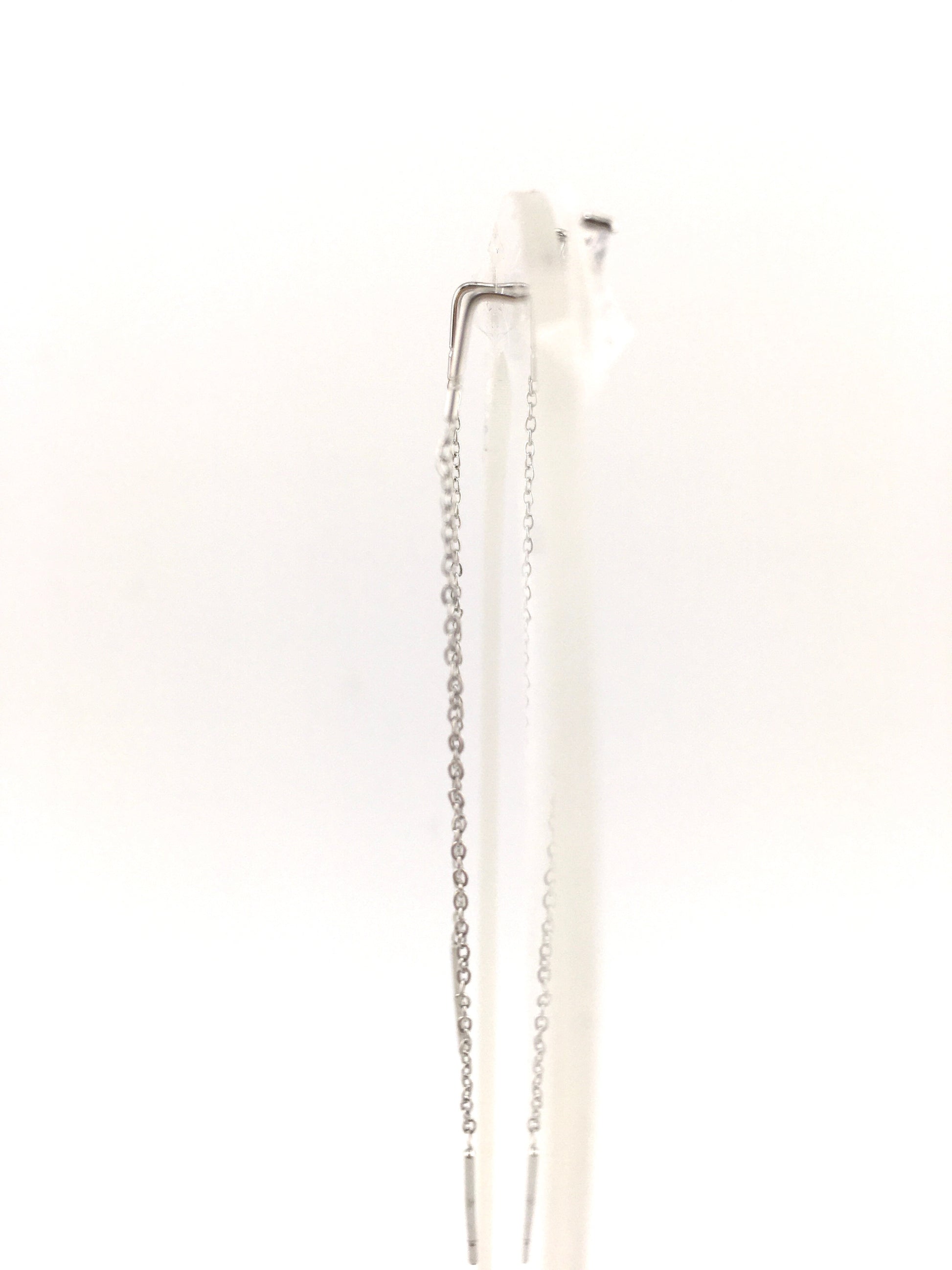 Grazie al design intelligente, è possibile inserire la catenella in un secondo foro, trasformando l’orecchino e creando due look diversi: un stile classico con pendente lungo o un look minimal indossando solo il punto luce.