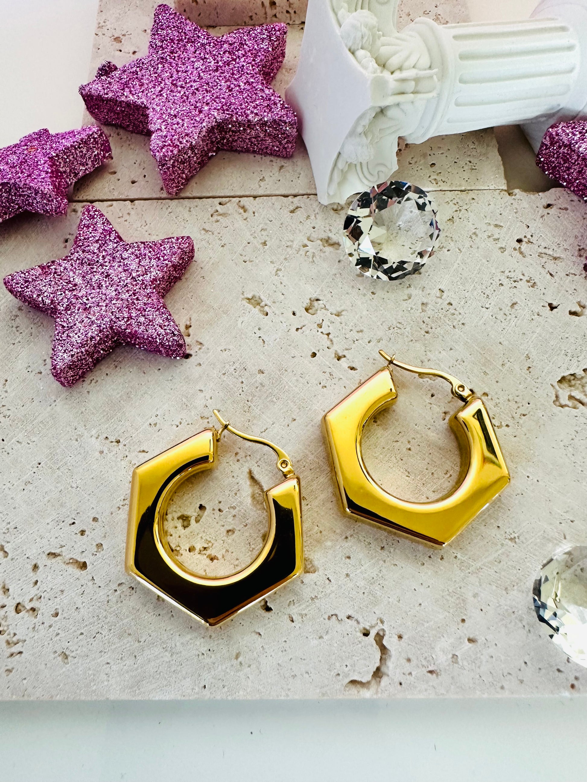 Orecchini Vega, minimalisti e raffinati hanno una forma esagonale in acciaio inossidabile anallergico.